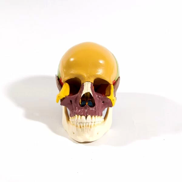Besides the bones of the cranium (frontal, parietal, temporal,occipital, and sphenoidal), those of the viscerocranium (ethmoid, vomer, zygomatic, maxilla, mandible) can be isolated or re-assembled to form the mosaic of the entire skull.