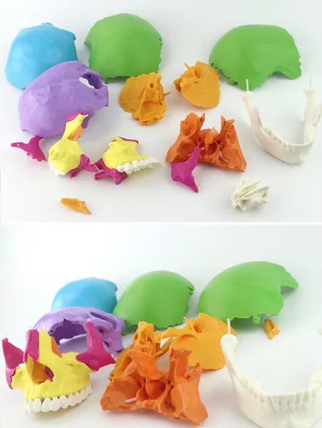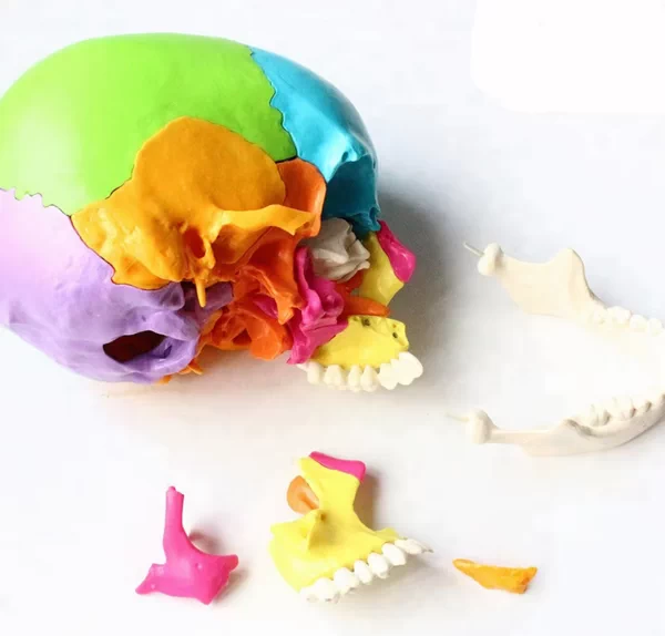 This budget coloured skull can be disassembled into 22 individual bony fragments, making the complex skull structure easily recognisable.